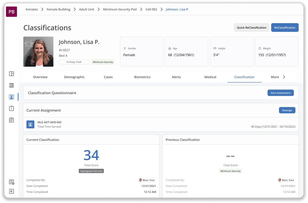 Inmate classification feature update