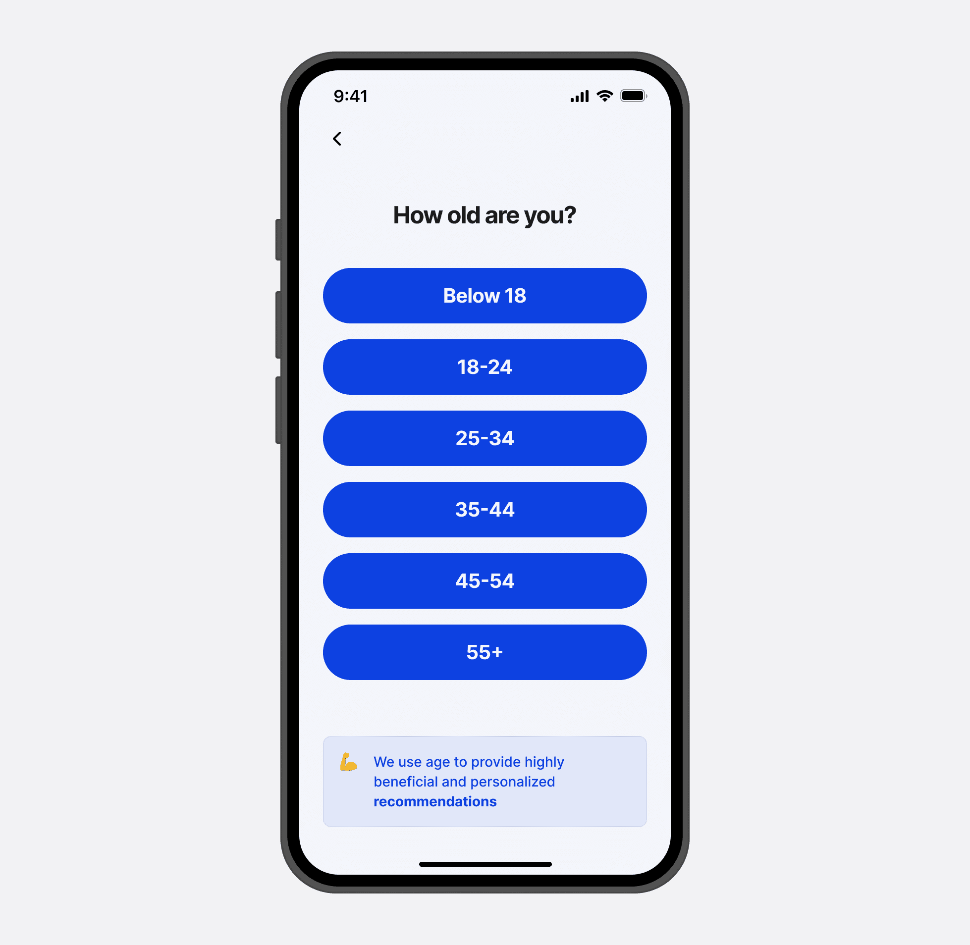 Including name and age in onboarding ensured AI recommendations were age-appropriate and personalized from the first voice check-in
